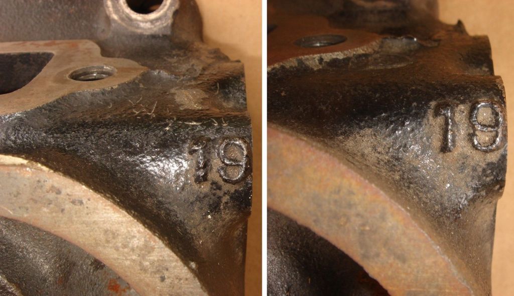 The heads remained unchanged when the engine block changed to a 6-bolt, and again the heads that came with this block are correctly dated and in excellent condition
